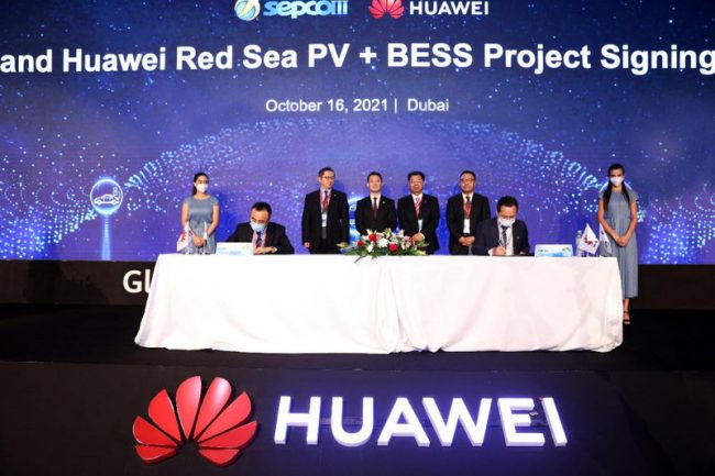 Tại Hội nghị thượng đỉnh Năng lượng số Toàn cầu – Global Digital Power Summit 2021 do Huawei tổ chức ở Dubai (Các Tiểu vương quóc Arập Thống nhất, UAE) ngày 16-10-2021 với hơn 500 đại biểu từ 67 quốc gia tham dự, Huawei Digital Power đã ký được một hợp đồng quan trọng với nhà thầu xây dựng nhà máy điện toàn cầu SEPCOIII (Trung Quốc) có trụ sở tại UAE để thực hiện Dự án Biển Đỏ (Red Sea Project) với hệ thống điện mặt trời (photovoltaics, PV) công suất 400MW cùng với giải pháp lưu trữ năng lượng pin (battery energy storage solution) 1.300MWh (BESS), hiện là dự án lưu trữ năng lượng lớn nhất thế giới. Hai bên sẽ hợp tác để giúp Saudi Arabia xây dựng một trung tâm năng lượng sạch và kinh tế xanh toàn cầu.