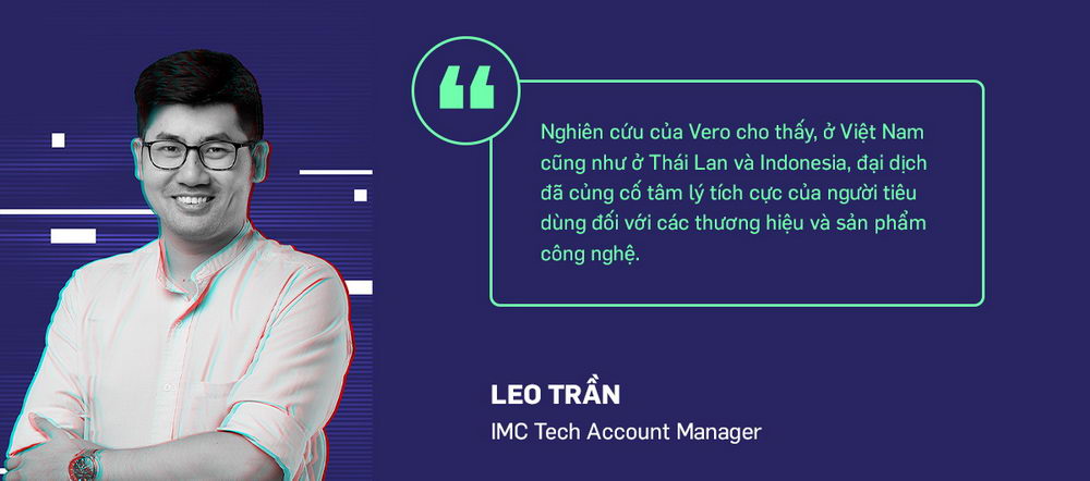 Ông Leo Trần cho biết: “Nghiên cứu của Vero cho thấy, ở Việt Nam cũng như ở Thái Lan và Indonesia, đại dịch đã củng cố tâm lý tích cực của người tiêu dùng đối với các thương hiệu và sản phẩm công nghệ. Các thương hiệu công nghệ hiện nay đang phát triển trong môi trường truyền thông có tính chiến thuật cao và thay đổi nhanh chóng. Nhờ đội ngũ IMC chuyên sâu về lĩnh vực công nghệ, chúng tôi sẽ có cái nhìn toàn diện hơn về chuyển động của ngành cũng như thúc đẩy mối quan hệ mật thiết với các đơn vị dẫn đầu.”