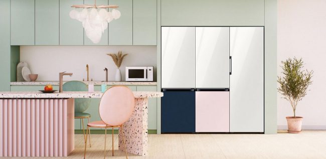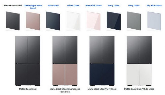 Khác biệt so với tông màu truyền thống trên tủ lạnh thông thường, BESPOKE là chiếc tủ lạnh đầu tiên cho phép người dùng có thể tự do quyết định và phối màu tủ lạnh theo sở thích cá nhân, với 3 gam màu trẻ trung và thời thượng: Trắng, Hồng và Xanh Navy. Ngoài màu sắc, BESPOKE được hoàn thiện bởi chất liệu mặt gương Glam Glass tinh tế, tôn lên vẻ đẹp hiện đại và sang trọng trong không gian bếp. Với BESPOKE, bạn có thể thỏa sức lựa chọn và kết hợp màu sắc phù hợp để đồng nhất hoặc tạo điển nhấn thú vị trong không gian bếp. Các tấm panel bằng thép hay kính có những màu sắc khác nhau được bán riêng cho người dùng rộng đường tùy biến.