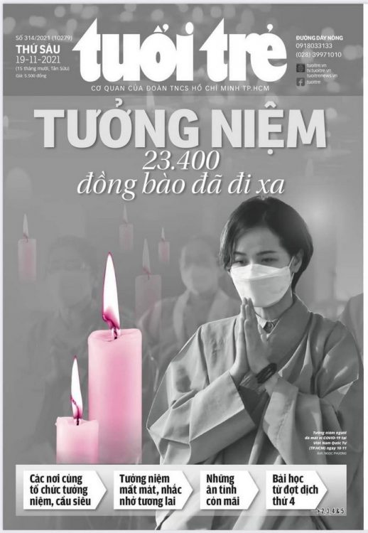 Sáng thứ Sáu 19-11-2021, báo Tuổi Trẻ thiết kế trang nhứt rất là được, gây nhiều cảm xúc. Một số báo khác cũng tương tự.