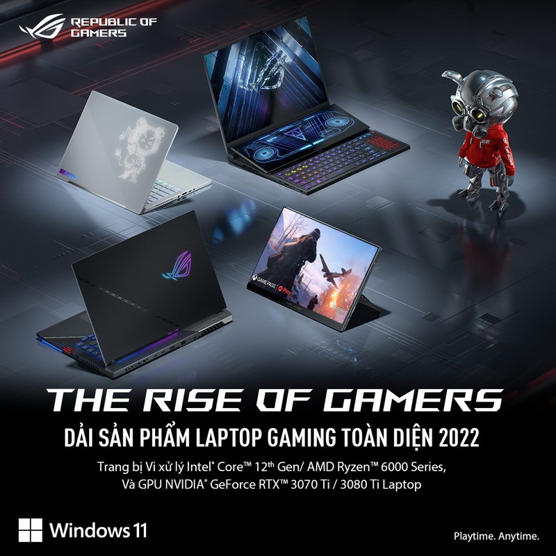 Tại triển lãm Điện tử tiêu dùng CES 2022 ở Las Vegas (Mỹ) từ 5 đến 7-1-2022, ASUS Republic of Gamers (ROG) với chủ đề “ROG: The Rise of Gamers” (ROG: Sự trỗi dậy của các game thủ) đã ra mắt loạt sản phẩm gaming laptop hoàn toàn mới với rất nhiều cải tiến. ASUS ROG cho biết: không chỉ mang tới những sản phẩm phục vụ tối đa mọi nhu cầu của khách hàng nói chung và game thủ nói riêng, mà thương hiệu thiết bị chuyên game này còn góp phần xây dựng nên một phong cách sống mới, đậm cá tính và khác biệt. Với nền tảng hệ điều hành mới, loạt vi xử lý mới nhất từ Intel và AMD, card đồ họa mới nhất từ AMD và NVIDIA, cùng những cải tiến về mặt công nghệ, thiết kế lẫn tính năng, ROG đã sẵn sàng cho việc bứt phá mọi giới hạn trong năm 2022.