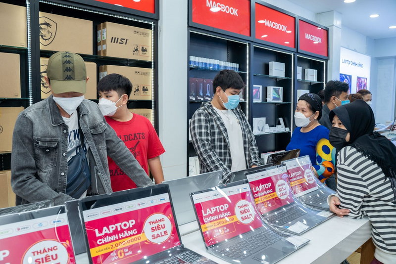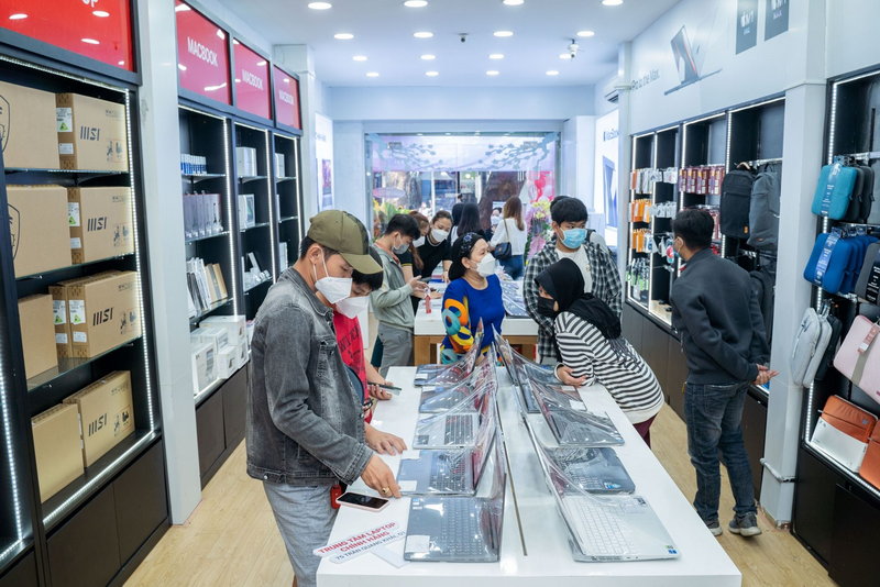 Trong ngày khai trương 8-1-2022, có khoảng 50% khách hàng lựa chọn các sản phẩm trong phân khúc từ 13-15 triệu đồng, khoảng 30% chọn các dòng cao cấp hơn và 20% chọn các dòng sản phẩm đặc thù của Apple là MacBook.