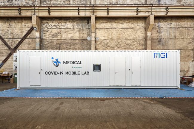 Phòng xét nghiệm di động trên container do MGI Tech triển khai ở Latvia.