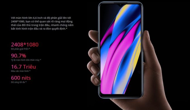 | Màn hình | Màn hình phẳng IPS 6.6 inch; FHD+ (1080 x 2400 pixel), 400ppi, màn hình có notch (có lõm nhỏ ở giữa mép trên), tỷ lệ hiển thị 20:9. Độ sáng 600 nit. Tốc độ lấy mẫu cảm ứng 180Hz. | Màn hình phẳng IPS 6.6 inch; FHD+ (1080 x 2412 pixel), 401ppi, màn hình đục lỗ (có lỗ tròn nhỏ ở góc trên bên trái), tỷ lệ hiển thị 20:9. Tốc độ refresh rate 120Hz với 6 tốc độ khác nhau tùy tác vụ. Tốc độ lấy mẫu cảm ứng 180Hz. |
