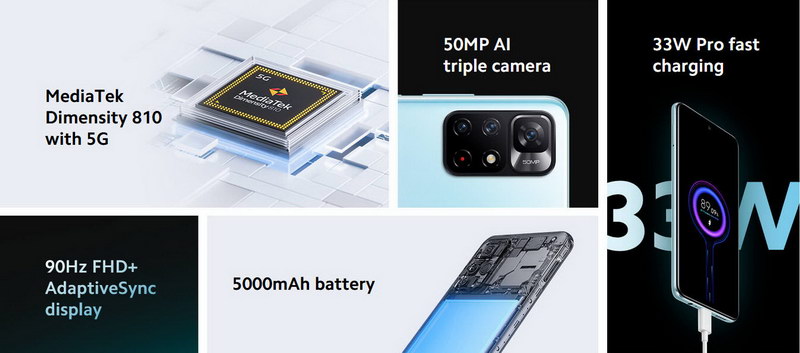 | Redmi Note 11 Pro+ 5G | Redmi Note 11S 5G | Redmi 10 5G | |