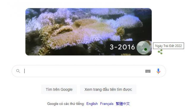 Nhân Ngày Trái đất (Earth Day) 22-4 năm nay, vào ngày 22-4-2022, khi mở trang chủ Google Search, mọi người trên thế giới thấy logo Google đã được thay bằng một Doodle với chủ đề biến đổi khí hậu (climate change) đang tàn phá Hành tinh Xanh của chúng ta.