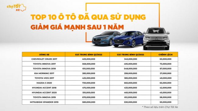Các mẫu ô tô trượt giá mạnh từ 8-15% so với thời điểm cùng kỳ năm ngoái. Đứng đầu danh sách này là Chevrolet Cruze đời 2017 được rao bán chỉ với giá 300 – 350 triệu đồng, giảm gần 15% so với một năm trước, và mất đi 50% so với thời điểm lăn bánh. So với các đối thủ cùng phân khúc thời điểm đó như Toyota Corolla Altis, Honda Civic, Kia Cerato thì Chevrolet Cruze rớt giá khá nhanh. Nguyên nhân đến từ việc dòng xe Chevrolet đã không còn phân phối tại Việt Nam, tạo nên tâm lý lo ngại rằng các chủ xe khó tiếp cận các dịch vụ hậu mãi. Đồng thời, nhược điểm của mẫu xe này là mức tiêu thụ nhiên liệu thuộc loại khủng so với những dòng sedan Nhật, Hàn cùng phân khúc.