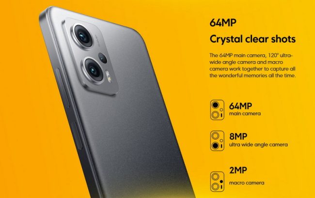 Cụm ba camera sau với camera chính 64MP, camera góc siêu rộng 8MP và camera macro 2MP. Camera trước 16MP. Với 19 mẫu khung vlog đẹp được cài đặt sẵn, cũng như chức năng Bản nháp, người dùng có thể quay phim và chỉnh sửa nội dung chất lượng cao ngay từ đầu.