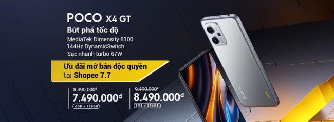 Thương hiệu smartphone cho giới trẻ POCO ngày 6-7-2022 đã ra mắt smartphone flagship mới POCO X4 GT tại thị trường Việt Nam (sau khi ra mắt toàn cầu ngày 23-6-2022). Smartphone được trang bị bộ vi xử lý cao cấp MediaTek Dimensity 8100 cho hiệu suất mạnh mẽ nhưng lại có giá bán phù hợp với nhiều người dùng trẻ yêu công nghệ, đặc biệt là cho chơi game và giải trí di động.