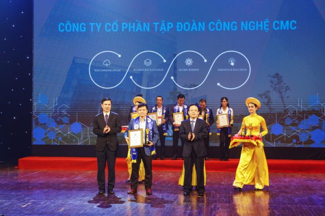 Ông Nguyễn Thành Lưu (thứ 2 từ trái qua) đại diện cho Tập đoàn Công nghệ CMC nhận giải thưởng.