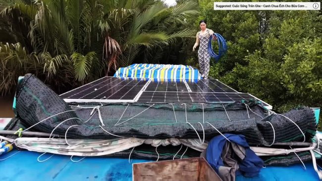 Anh chủ ghe sinh năm 1988 cũng là chủ kênh YouTube đạt được Nút Bạc (có từ 100.000 người theo dõi) chuyên về đời sống bán hàng rong trên sông cho biết mình đã bổ sung thêm những tấm pin mặt trời khi nhu cầu sử dụng gia tăng. Và với nguồn năng lượng từ mặt trời đó, anh không chỉ đủ phục vụ cho nhu cầu sạc thiết bị quay dưng video, sạc các thiết bị di động, quạt mát và chiếu sáng, mà còn chạy được cả một chiếc tủ lạnh nhỏ bảo quản thực phẩm.