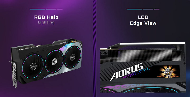 Màn hình LCD Edge View ở mặt bên của card AORUS cung cấp cho người dùng một tùy chọn khác để cá nhân hóa card của mình bằng text, hình ảnh hoặc file GIF. Người ta cũng có thể theo dõi các số liệu thống kê quan trọng của tình trạng card, như mức tiêu thụ điện năng, nhiệt độ, RPM, … bằng LCD Edge View.