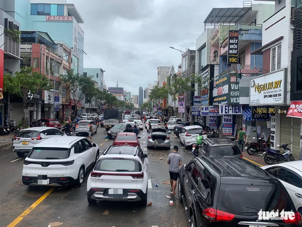 Sáng sớm, nhiều đường phố Đà Nẵng nước đã rút nhờ trời đã tạnh mưa, nhưng hàng trăm chiếc xe ôtô nằm ngổn ngang la liệt vì chết máy. Có những chiếc ôtô bị dòng nước lũ cuốn trôi lăn lóc, xoay ngang trở dọc.