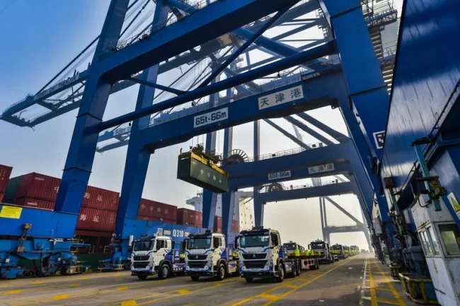Sau một thời gian được triển khai công nghệ mới, khu vực đón tàu khách tại bãi container ở Khu C của Cảng Thiên Tân đã ghi nhận những thay đổi lớn. Tại đây xuất hiện các cần cẩu container được vận hành tự động và các xe điện không người lái đến để vận chuyển container đi. Các cần trục quay được điều khiển từ xa sẽ bốc dỡ nhịp nhàng container hàng hóa từ các tàu chở hàng, và xếp các container lên xe điện không người lái. Nhờ hướng dẫn chỉ đường của hệ thống định vị vệ tinh BeiDou, các xe điện container này đi đến các trạm tự động đóng/mở khóa với lộ trình lái được tối ưu hóa theo thời gian thực, mở khóa container rồi sau đó lái xe quay lại bãi tiếp nhận ban đầu. Toàn bộ quá trình được hoàn thành chỉ trong một chặng duy nhất.