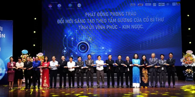 Đại diện Huawei cùng các nhà lãnh đạo ban ngành, địa phương va doanh nghiêp tham dự TechFest Vĩnh Phúc 2022 bắt tay nhau phát động phong trào Đổi mới sáng tạo.