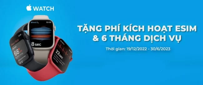 Nhân dịp ra mắt dịch vụ eSIM trên Apple Watch, từ ngày 19-12-2022 đến 30-6-2023, VinaPhone miễn phí kích hoạt (100.000đ) và phí thuê bao trong 6 tháng đầu tiên sử dụng dịch vụ (25.000đ/tháng), với tổng ưu đãi là 250.000 đồng.