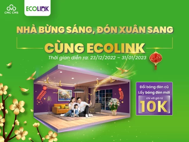 Mong muốn cung cấp hàng ngàn sản phẩm chiếu sáng uy tín, chất lượng cao, với chi phí ưu đãi, chung tay hỗ trợ cộng đồng, thắp sáng gia đình Việt trong dịp Tết Nguyên Đán, EcoLink kết hợp cùng nhà phân phối độc quyền CMS triển khai chương trình thu bóng cũ, đổi bóng mới.