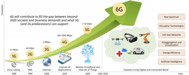 Theo chu kỳ 10 năm, kể từ mạng 1G vào năm 1980, thế hệ mạng di động tiếp theo 5G là 6G sẽ chính thức có mặt trên thị trường thế giới vào năm 2030.