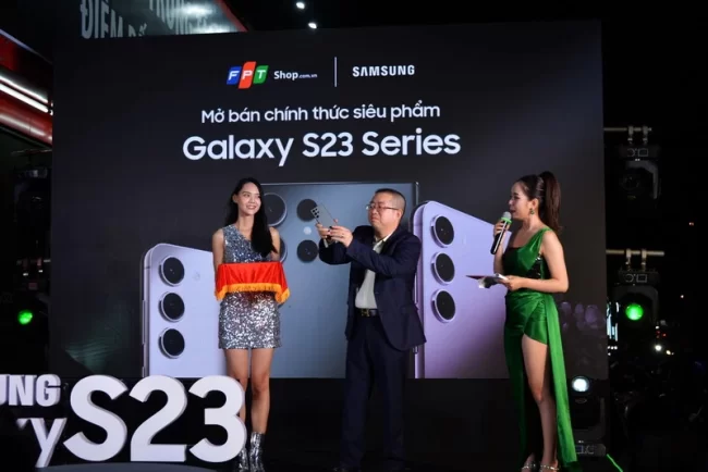 Vào lúc 19 giờ ngày 17-2-2023, hệ thống bán lẻ hàng công nghệ FPT Shop đã chính thức mở bán dòng smartphone flagship mới Samsung Galaxy S23 Series sớm nhất tại thị trường Việt Nam. Chỉ sau 1 giờ mở bán, hệ thống đã giao 500 máy Galaxy S23 Series chính hãng đầu tiên tại Việt Nam đến tận tay người dùng.