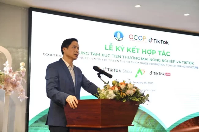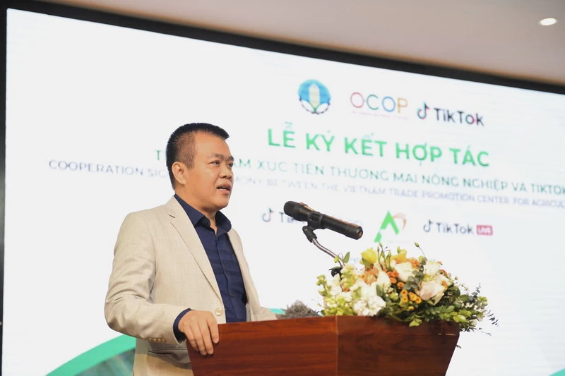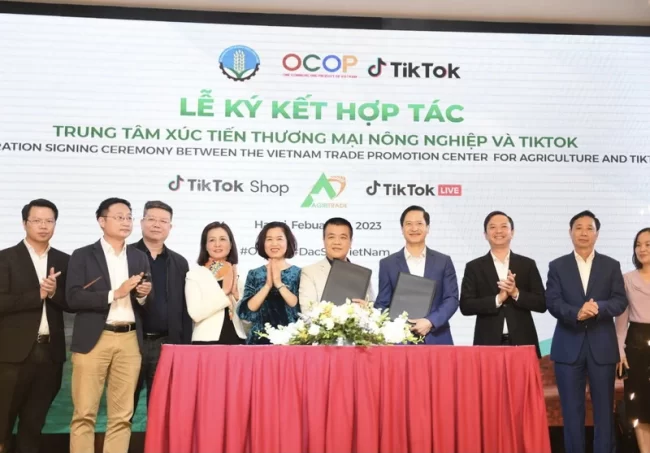 Nền tảng video ngắn TikTok cùng Trung tâm Xúc tiến Thương mại (XTTM) Nông nghiệp thuộc Bộ Nông nghiệp & Phát triển Nông thôn ngày 28-2-223 tại Hà Nội đã ký kết hợp tác nhằm tăng cường hỗ trợ cho các doanh nghiệp vừa và nhỏ, hợp tác xã trong việc số hóa các hoạt động xúc tiến thương mại thuộc Chương trình “Mỗi xã một sản phẩm” (OCOP).