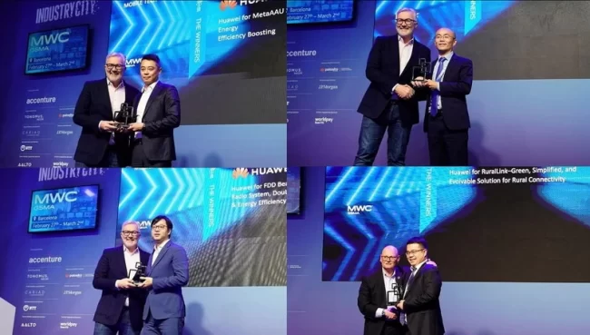 Đó là các giải thưởng “Thách thức Công nghiệp 5G” (5G Industry Challenge) cho Nhà máy GSMA 5G Hub; “Sáng kiến Di động Tốt nhất cho các Thị trường Mới nổi” (Best Mobile Innovation for Emerging Markets) cho Huawei RuralLink, “Cơ sở Hạ tầng Mạng di động Tốt nhất” cho Huawei MetaAAU, và “Công nghệ Di động Đột phá nhất” (Best Mobile Technology Breakthrough) cho Huawei FDD Beamforming.