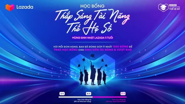 Vừa qua, tại Đại học Quốc gia Hà Nội đã diễn ra sự kiện trao học bổng “Thắp sáng Tài năng Thế hệ Số” cho 100 sinh viên có hoàn cảnh khó khăn và thành tích học tập nổi bật. Chương trình học bổng này do nền tảng thương mại điện tử (TMĐT) Lazada Việt Nam phối hợp cùng cộng đồng các nhà bán hàng thực hiện.