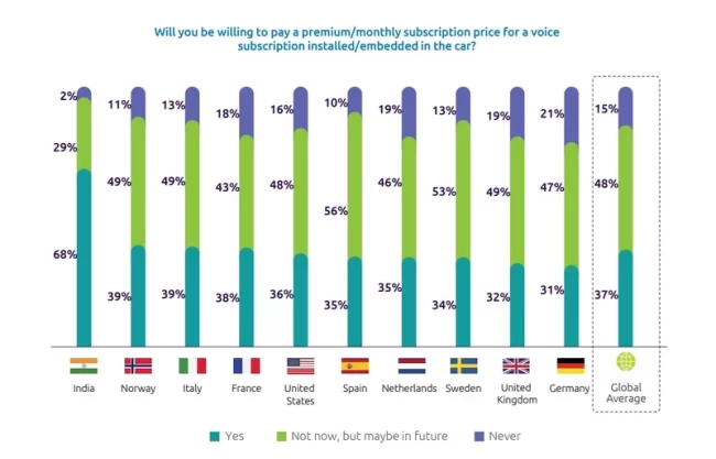 Theo số liệu báo cáo của CAPP, ba phần tư người tiêu dùng cho biết sẽ sử dụng trợ lý giọng nói thường xuyên miễn là họ có trải nghiệm tốt. Và 37% người tiêu dùng sẵn sàng trả phí để sử dụng trợ lý giọng nói trên ôtô, 48% khác cho biết sẽ xem xét làm như vậy trong tương lai. Chỉ có 15% cho biết họ không sẵn sàng trả tiền.