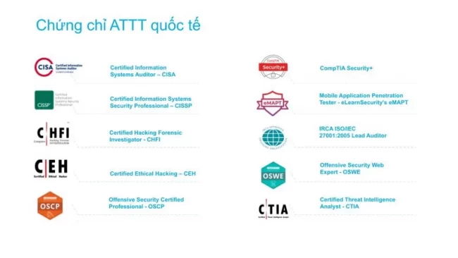 “Bộ sưu tập” chứng chỉ của đội ngũ chuyên gia CMC Cyber Security.