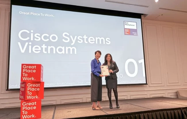Tập đoàn Công nghệ Cisco (Mỹ) ngày 26-5-2023 cho biết Cisco Việt Nam đã được xếp hạng Nhất (hạng mục Quy mô nhỏ) trong bảng xếp hạng Nơi làm việc tốt nhất Việt Nam năm 2023 (Great Place to Work 2023). Đây là kết quả trong cuộc xếp hạng 2023 Vietnam Best Workplaces và là năm thứ hai liên tiếp Cisco Việt Nam đứng đầu danh sách này.