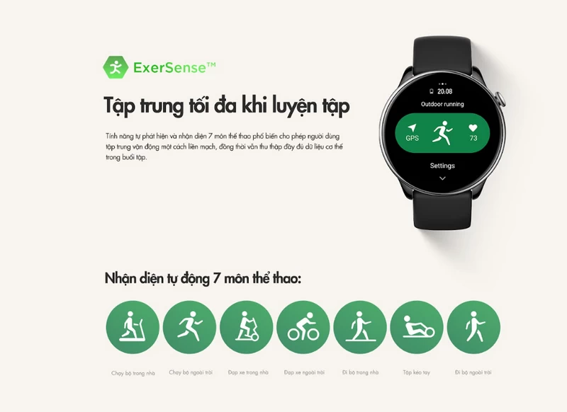 • Thiết lập lộ trình tập luyện thể thao hiệu quả: Sở hữu tính năng chống nước lên tới 5 ATM cùng khả năng nhận biết 120 chế độ thể thao, Amazfit GTR Mini hỗ trợ theo dõi và thiết lập chế độ rèn luyện cơ thể phù hợp dành riêng cho người dùng.