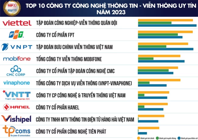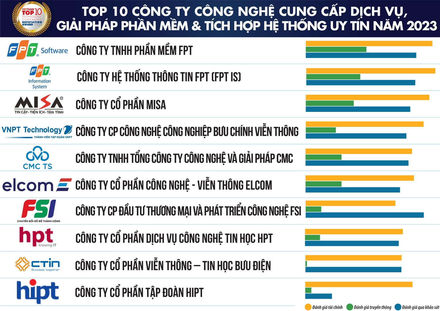 Uy tín của các doanh nghiệp công nghệ được đánh giá qua năng lực tài chính doanh nghiệp bằng phương pháp Media Coding, khảo sát đối tượng nghiên cứu và các bên liên quan được thực hiện trong tháng 5 và 6-2023. Bảng xếp hạng được công bố theo 2 danh sách: Top 10 Doanh nghiệp Công nghệ thông tin – Viễn thông (CNTT-VT) và Top 10 Doanh nghiệp Công nghệ cung cấp Dịch vụ, giải pháp Phần mềm & Tích hợp hệ thống uy tín năm 2023.