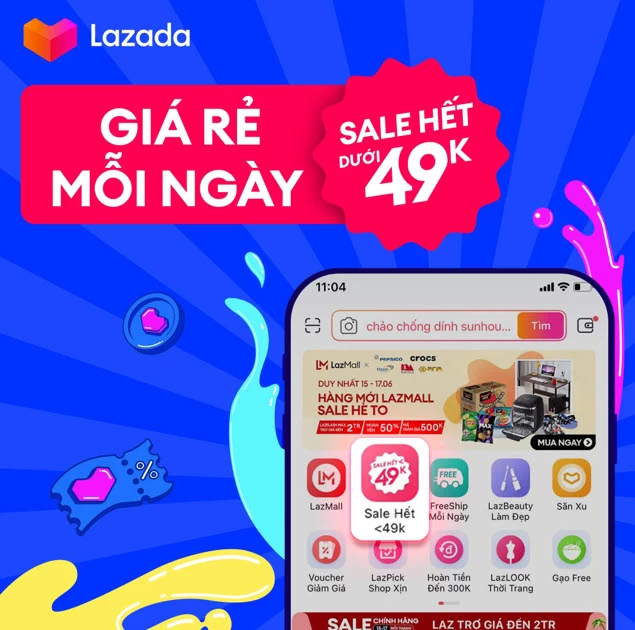 Trong tháng 6-2023, nền tảng thương mại điện tử Lazada Việt Nam đã phối hợp cùng với nhiều thương hiệu và nhà bán hàng để đẩy mạnh hai kênh mua sắm “LazFlash Max – Hàng Hiệu Rẻ Vô Đối Mỗi Ngày” và “Giá Rẻ Mỗi Ngày, Sale Hết Dưới 49k”. Cụ thể, hai kênh mua sắm này sẽ mang tới cho người tiêu dùng hàng ngàn deal hời với giá siêu rẻ và được liên tục cập nhật mỗi ngày, từ đó người tiêu dùng sẽ có thêm nhiều lựa chọn mua sắm đa dạng và tiết kiệm hơn.