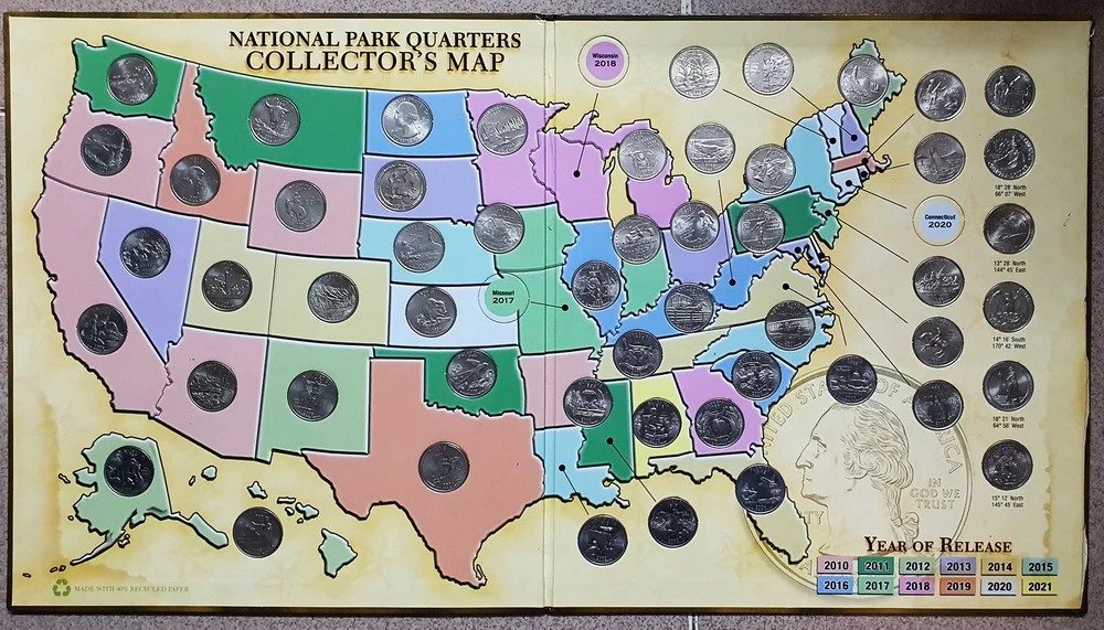 Cuốn album này có các lỗ tròn vừa khít đồng quarter khoét sẵn trên bản đồ Hoa Kỳ ngay vị trí từng tiểu bang. Bạn sẽ phải sưu tập các đồng quarter của từng tiểu bang để gắn vào các lỗ tròn tương ứng trên bản đồ album.