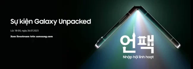 Sự kiện Galaxy Unpacked 2023 với chủ đề “Nhập hội linh hoạt” (Join the flip side) sẽ diễn ra vào lúc 18g (giờ VN) ngày 26-7-2023 ngay tại Seoul (Hàn Quốc), thay vì ở Mỹ như nhiều lần trước. Sự kiện ra mắt này cũng sẽ được phát trực tuyến trên kênh YouTube cũng như trang web chính thức của hãng. Theo cộng đồng công nghệ, tại Galaxy Unpacked 2023 Seoul, Samsung sẽ ra mắt toàn cầu bộ đôi smartphone màn hình gập Galaxy Z Fold5 và Galaxy Z Flip5, cùng với đồng hồ thông minh Galaxy Watch6.