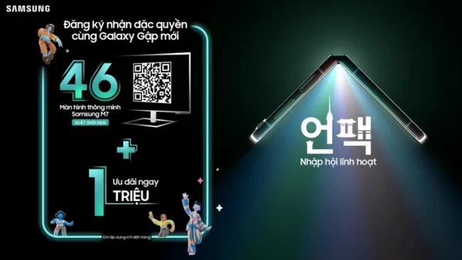 Sau khi Công ty Điện tử Samsung Electronics (Hàn Quốc) phát hành thư mời từ rất sớm cho sự kiện Galaxy Unpacked 2023, với những dấu hiệu báo hiệu sự ra đời của dòng smartphone cao cấp Galaxy Gập thế hệ mới, Samsung Vina ngày 12-7-2023 đã công bố chương trình khuyến mại mở bán “Đặt trước ngay – Rước thêm M7”. Chương trình áp dụng cho khách hàng đăng ký trước thông tin tại đây, và sau đó đặt trước thành công sản phẩm Galaxy Gập mới trong thời gian từ 26-7 đến 17-8-2023.