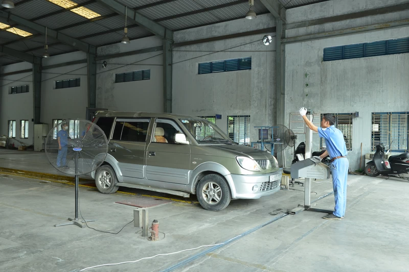 Kiểm định viên tiến hành quy trình đăng kiểm với một phương tiện 7 chỗ ngồi. (Ảnh: Cục Đăng kiểm Việt Nam).