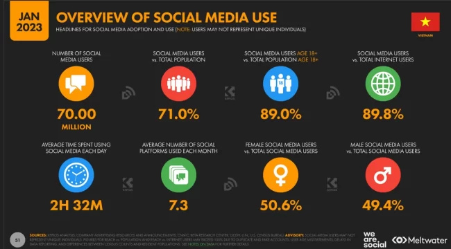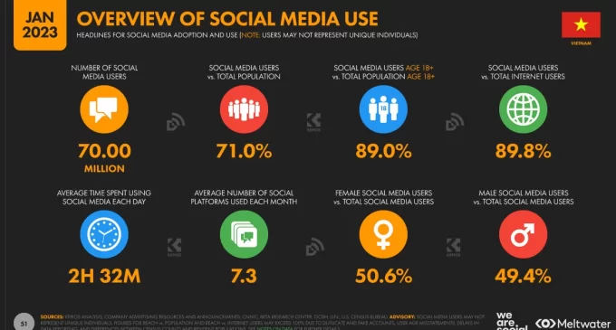Báo cáo Digital 2023 – Vietnam của We Are Social về tình hình dùng mạng xã hội ở Việt Nam.