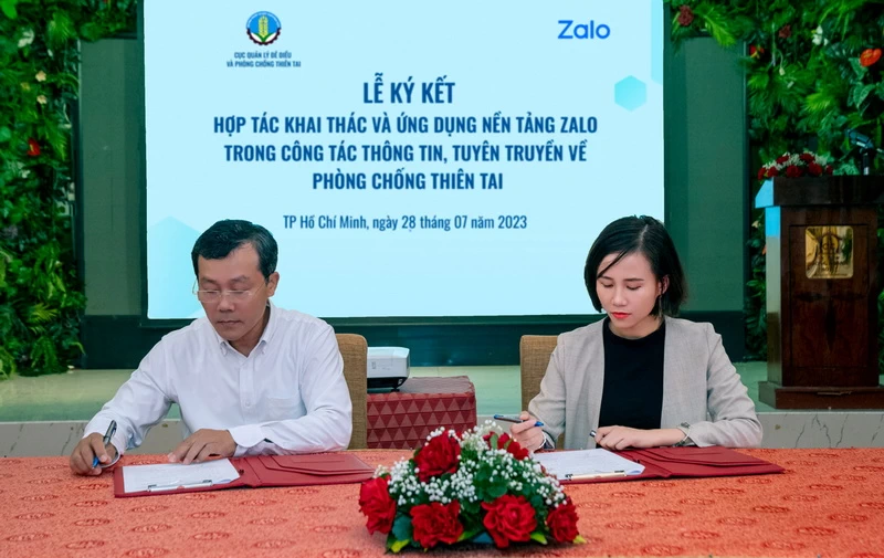 Lễ ký kết ứng dụng nền tảng Zalo trong phòng, chống thiên tai giữa Cục Quản lý Đê điều và Phòng, chống thiên tai (Bộ Nông nghiệp và Phát triển Nông thôn) và Zalo đã diễn ra tại TP.HCM vào ngày 28-7-2023 với sự tham gia của đại diện Quỹ Nhi đồng Liên Hiệp Quốc UNICEF Việt Nam và Sở NN-PTNN các tỉnh khu vực phía Nam.