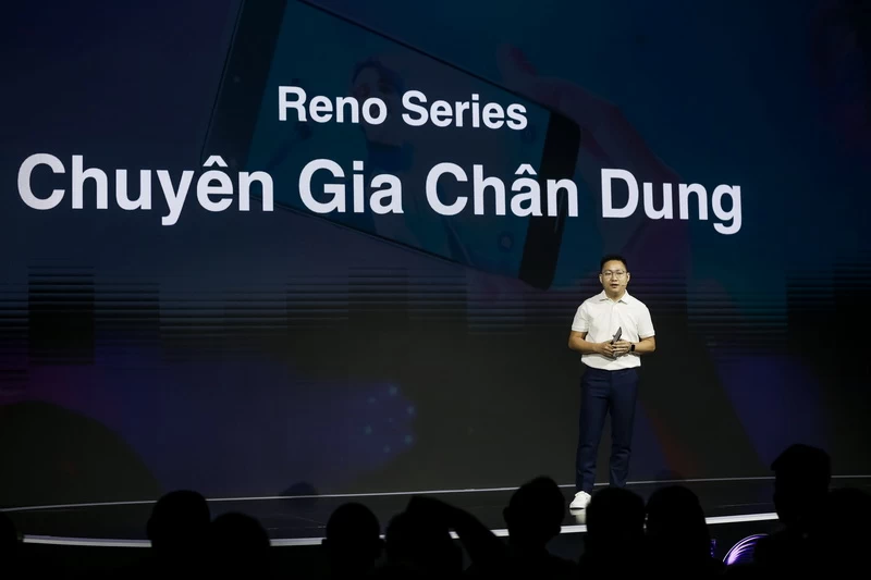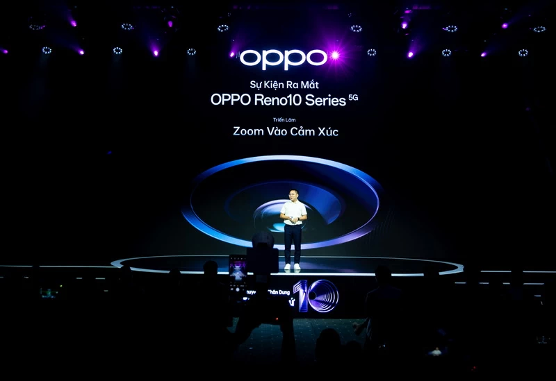 Ông Văn Bá Luýt, Giám đốc Sản phẩm tại OPPO Việt Nam, giới thiệu OPPO Reno10 Series tại sự kiện ra mắt ở TP.HCM tối 2-8-2023.