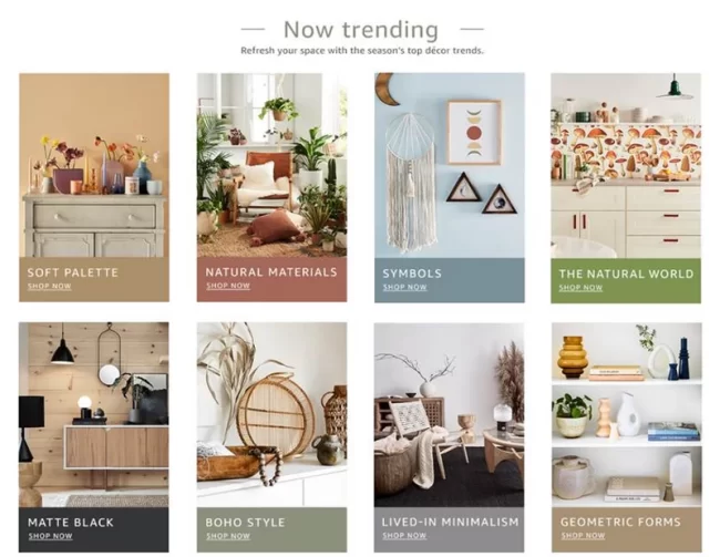 Trong đó, thiết kế và phong cách là những yếu tố quan trọng đối với các sản phẩm nội thất và trang trí nhà vì chúng phản ánh tính cách, lối sống và tâm trạng của người dùng, đồng thời nâng cấp không gian sống. Chính vì vậy, người bán cần tìm kiếm và khám phá các trang web về phong cách sống ở Châu Âu và Châu Mỹ, theo dõi các xu hướng trang trí nhà cửa và nội thất, đồng thời lấy cảm hứng thiết kế từ các xu hướng trang trí hàng đầu của Amazon (theo Amazon.com: Now trending: Home & Kitchen).