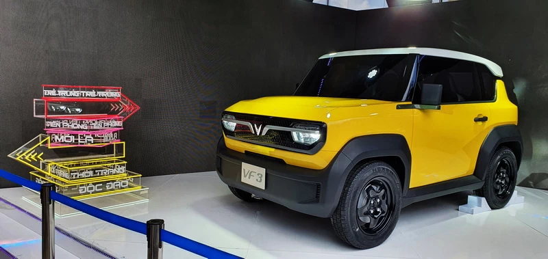 “Ngôi sao mới” VF 3 thuộc dòng mini-car được giới chuyên môn đánh giá là có nhiều người trông đợi vì kiểu dáng nhỏ gọn, bắt mắt, động cơ điện tiết kiệm chi phí sử dụng, đi cùng giá bán hứa hẹn sẽ dễ tiếp cận, mang giấc mơ ôtô đến gần hơn với người Việt. Đây là mẫu xe điện cỡ nhỏ đầu tiên của VinFast. Nó gồm 2 phiên bản VF 3 Eco và VF 3 Plus. Kích thước chuẩn (dài x rộng x cao) 3.114 x 1.673 x 1.567 mm. Ngoại hình VF 3 như một chiếc SUV thu nhỏ. Thiết kế 2 cửa bên hông. 1 cửa cốp sau, không gian nội thất đủ cho 5 người ngồi. Thân xe nhỏ gọn nhưng cao ráo, khỏe khoắn nhờ được trang bị bộ la-zăng có kích thước lên tới 16 inch, tạo khoảng sáng gầm xe lớn, giúp xe dễ dàng di chuyển trên nhiều điều kiện địa hình. Ngoại thất nổi bật với các khối hình học mạnh mẽ và những đường gân cứng cáp xuyên suốt từ trước ra sau. Theo thông tin không chính thức, VF 3 có thể chạy được tới 285km cho 1 lần sạc đầy. Dự kiến, VinFast VF 3 sẽ chính thức nhận đăng ký đặt mua vào tháng 9-2023 và bàn giao trong quý 3-2024. (Thông tin chi tiết về VinFast VF 3).