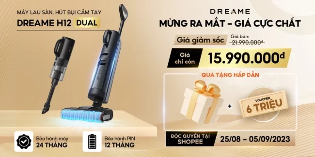 Dreame H12 Dual: giá bán 21.990.000 đồng, ưu đãi còn 15.990.000 đồng, tặng quà hấp dẫn.