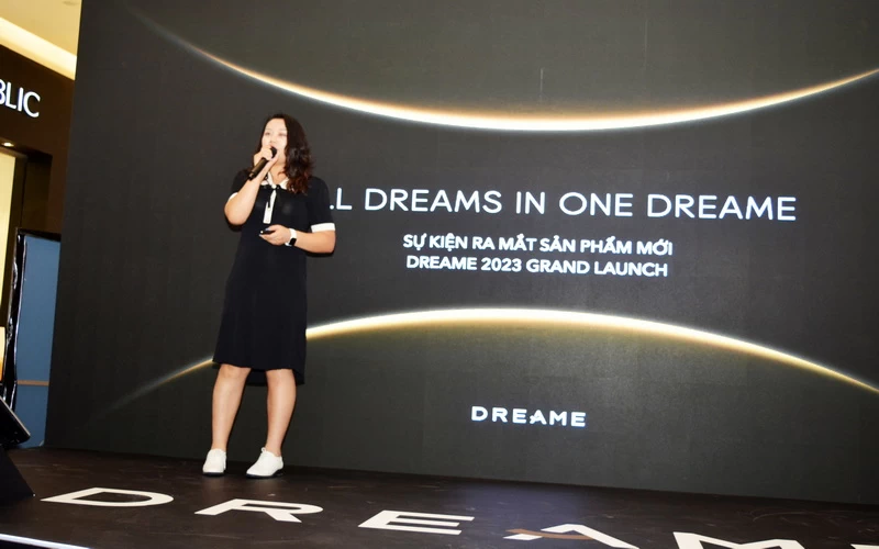 Bà Jacey Zheng – Phụ trách nhãn hàng Dreame Khu vực Đông Nam Á, tại sự kiện ra mắt sản phẩm mới ở TP.HCM chiều 25-8-2023.