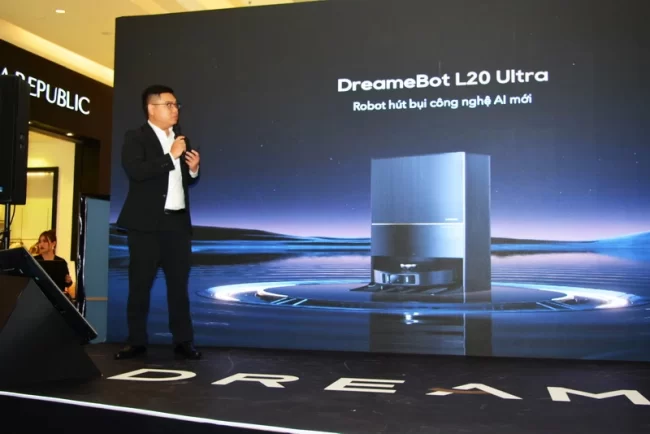 Giới thiệu DreameBot L20 Ultra tại sự kiện ra mắt sản phẩm mới ở TP.HCM chiều 25-8-2023.