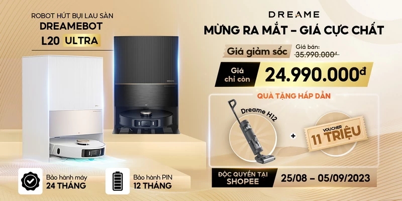 Bộ đôi sản phẩm robot hút bụi lau sàn DreameBot L20 Ultra và máy hút bụi lau nhà cầm tay Dreame H12 Dual được bán tại Việt Nam với ưu đãi mở bán đặc biệt như sau:
