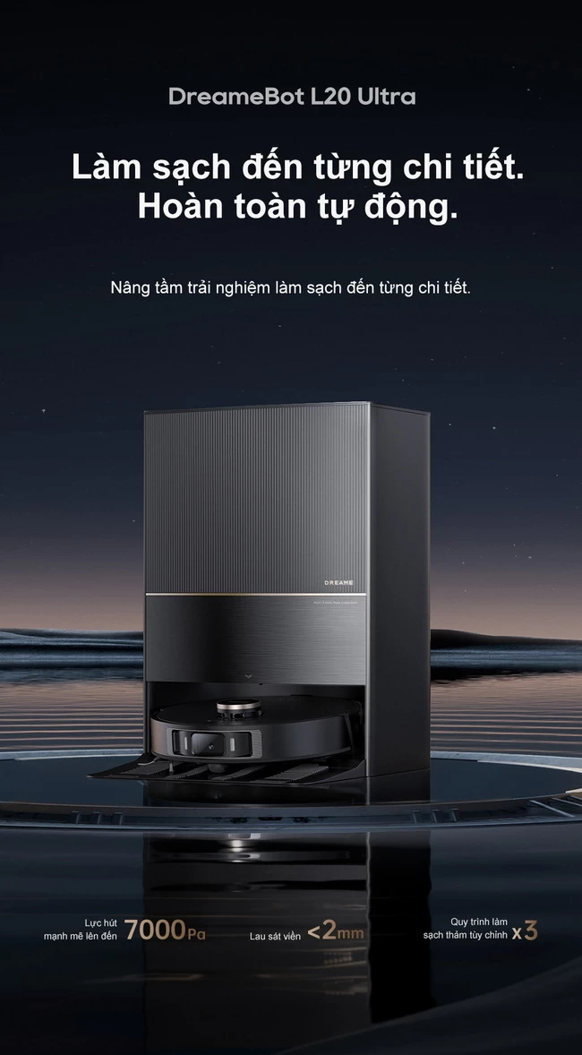 DreameBot L20 Ultra: giá bán 35.990.000 đồng, ưu đãi còn 24.990.000 đồng, tặng máy hút bụi lau sàn cầm tay Dreame H12.