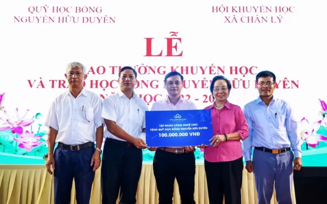 Trước đó, ngày 26-8-2023, đại diện CMC cùng bà Nguyễn Thị Doan – Nguyên Phó Chủ tịch nước, Chủ tịch Hội Khuyến học Việt Nam, đã trao tặng 100 triệu đồng cho Quỹ Học bổng Nguyễn Hữu Duyên tại xã Chân Lý (huyện Lý Nhân, tỉnh Hà Nam).