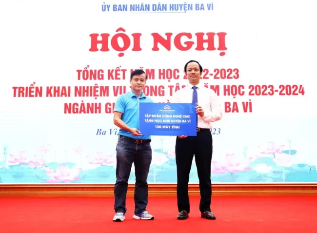 Ngày 29-8-2023, đại diện Tập đoàn Công nghệ CMC, ông Nguyễn Thành Lưu – Trưởng ban Marketing và Truyền thông, đã trao tặng 100 máy tính trị giá gần 600 triệu đồng cho công tác giáo dục và chuyển đổi số của huyện Ba Vì (Hà Nội). 100 bộ máy tính này được phân bổ về UBND các xã và trường học của huyện Ba Vì.