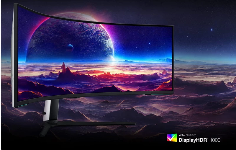 Với độ cong 1000R trên màn hình 57 inch cùng tỷ lệ khung hình 32:9, Odyssey Neo G9 có độ rộng hiển thị bằng hai 2 màn hình 32 inch UHD đặt bên nhau. Người dùng sẽ được bao trùm bằng hình ảnh siêu sắc nét và góc nhìn rộng, tạo cảm giác đắm chìm bất tận trong những tựa game đỉnh cao.