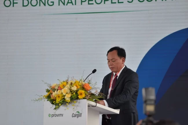 Ông Võ Tấn Đức, Quyền Chủ tịch UBND tỉnh Đồng Nai, phát biểu: “Chính quyền và nhân dân tỉnh Đồng Nai ghi nhận và đánh giá cao sự quyết tâm, cam kết của Cargill trong hoạt động kinh doanh không tách rời trách nhiệm xã hội của doanh nghiệp, nhất là trong lĩnh vực ưu tiên của công ty về an ninh lương thực, dinh dưỡng và phát triển bền vững, cũng như hoạt động thiện nguyện của Quỹ Cargill Cares. Chúng tôi tin tưởng rằng thành công của Tập đoàn Cargill nói chung và Provimi nói riêng sẽ góp phần nâng cao hình ảnh của Đồng Nai với các doanh nghiệp Hoa Kỳ và các nhà đầu tư nước ngoài khác; nhất là khi lãnh đạo hai nước Việt Nam – Hoa Kỳ vừa ra Tuyên bố chung về nâng cấp quan hệ Việt Nam – Hoa Kỳ lên Đối tác Chiến lược Toàn diện vì hòa bình, hợp tác và phát triển bền vững.”